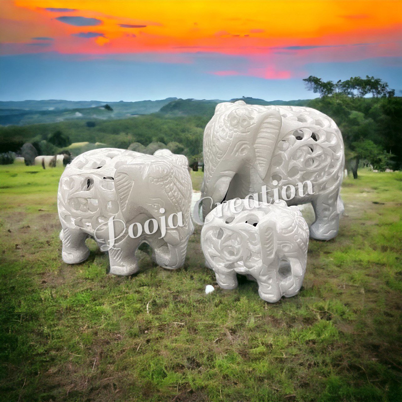 Handicrafts Marble Decorative Elephant Family Statue for Home Decor Showpiece Elephants 3 set with Beautiful Work