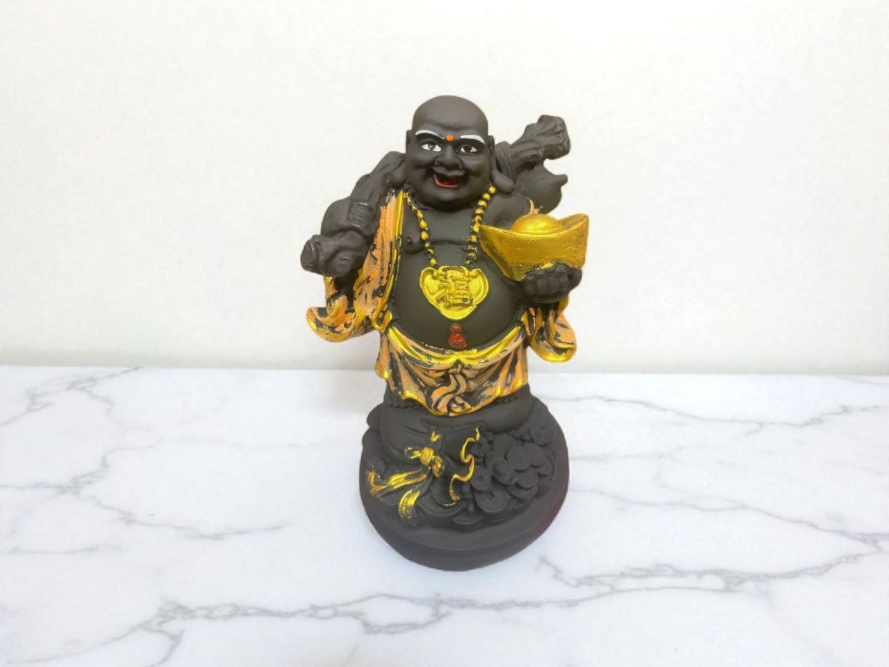 Be the first to review “Pcs Handmade Poly Resin Feng Shui Lucky for Money, Success Black Laughing Buddha with Coins Bundle 7 inch”