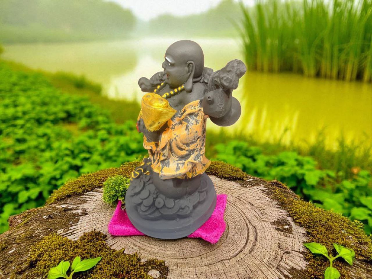 This decorative idol is ideal for home decor, office desks, shops, reception areas, and gifting purposes. According to Feng Shui and Vastu beliefs, placing a Laughing Buddha helps attract positivity, financial growth, and joyful energy into the surroundings.